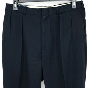 Polo Ralph Lauren Dress Pants 36 x 32 Mens Navy Blue Pleated Cuffed Unlined