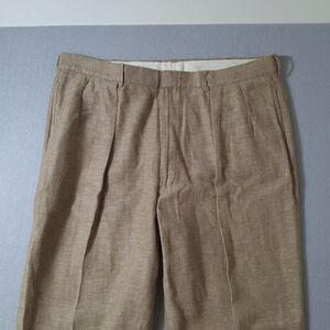 Polo Ralph Lauren Dress Pants Mens 38x30 Linen Blend Trousers Cuffed Herringbone. Tag says 38x32 but measurements are 38x30.