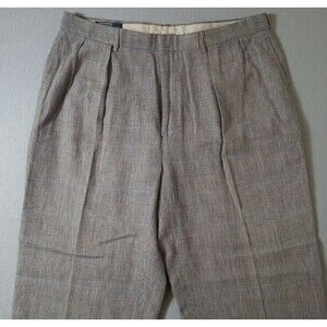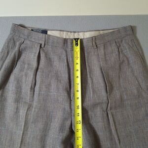 Polo Ralph Lauren Dress Pants Mens 38x32 Linen Blend Trousers Cuffed Houndstooth