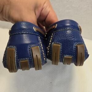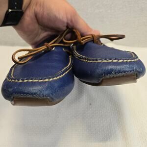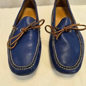 Polo Ralph Lauren Driver Loafers Mens 10.5 D Blue Grained Leather Made In Brazil. Classic, Nautical, Coastal, Summer, Boat Shoe, Minimalist, Preppy, Everyday, Driving Moc, Soft Leather