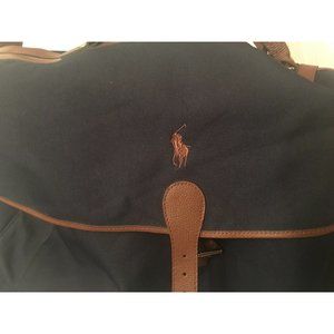 Polo Ralph Lauren Duffel Bag Large Canvas Blue Brown Carry On Overnight …
