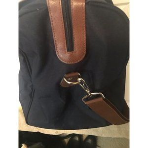 Polo Ralph Lauren Duffel Bag Large Canvas Blue Brown Carry On/ Overnight Bag. Condition is Pre-owned. Shipped with USPS Mail.