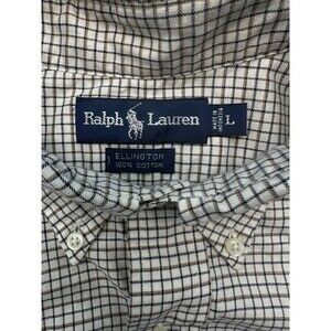 Men's Ralph Lauren Polo "Ellington" button down dress shirt, size large. Check pattern, multicolor.100% cotton. No holes, stains, rips or tears. Measurements in photos. Smoke free home.