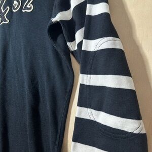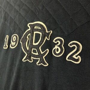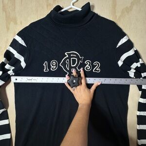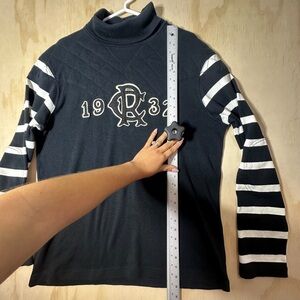 Stylish turtleneck with bold stripes. Features iconic logo and year detail. Ideal for casual wear.