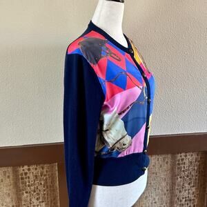 Polo Ralph Lauren Wool Cardigan with Equestrian Theme Silk Panels