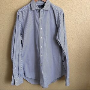 Great condition. Men’s Polo Ralph Lauren Estate Classic Fit, long sleeve, button down shirt. Elevate your style with this classic blue striped shirt. Perfect for any occasion, it offers a timeless look and comfortable fit.