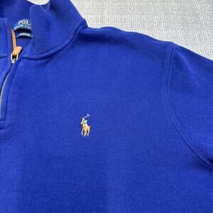 Polo Ralph Lauren Estate Rib Sweater Large Blue 1/4 Zip Pullover Comfort