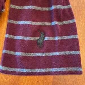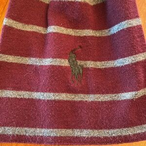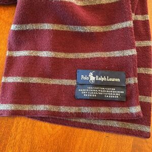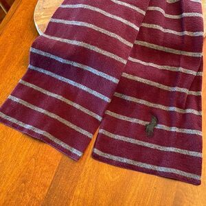 Polo Ralph Lauren Extra Long Cotton Scarf. 100% Cotton, Dry Clean. In a Gray & Burgundy Stripe. Measures approximately 80" Long x 6" Wide!