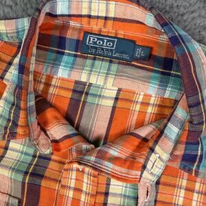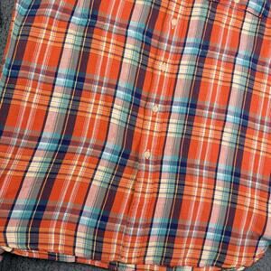 Polo Ralph Lauren Flannel Shirt Mens L Orange Silk Linen Plaid Work Chin Strap