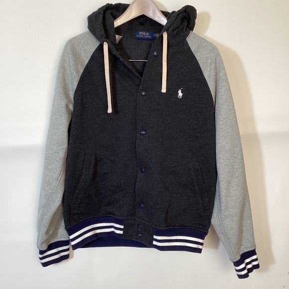Polo Ralph Lauren Fleece Hooded Baseball Varsity Jacket Grey Mens size M