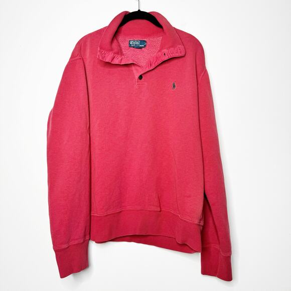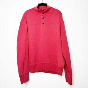 Polo Ralph Lauren Fleece Lined Mock Neck Henley Sweatshirt Red Men’s Large