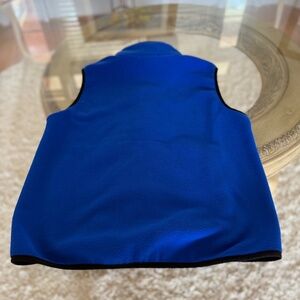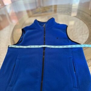 This Polo Ralph Lauren fleece vest is perfect for young boys in size medium (10/12) who want to stay warm and stylish during the colder seasons. The vest features a full zip closure, making it easy to put on and take off. Made from polyester fleece fabric, it provides comfort and breathability. The classic blue color and solid pattern make it versatile to be worn during winter, fall, and spring. Easy to care for with machine washable instructions, this vest is a great addition to any boy's outerwear collection.