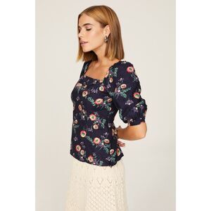 Made from 100% linen, this blouse features a square neck, three-quarter puff sleeves and all-over floral print.