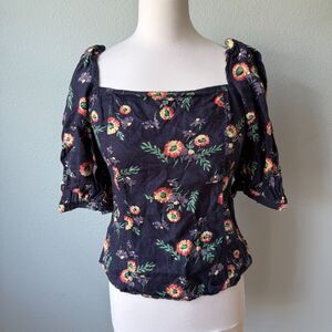Polo Ralph Lauren Floral Print Linen Puff Sleeve Blouse Size 8