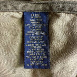 Oiled cotton blend. Lots of pockets, full zip, snap closure.