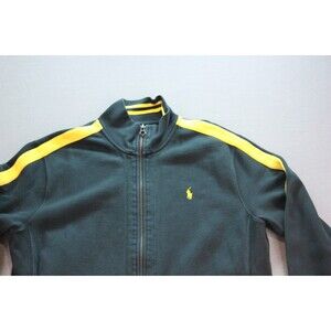 Polo Ralph Lauren Full Zip Sweatshirt Mens Black yellow Striped Pockets SZ XL