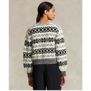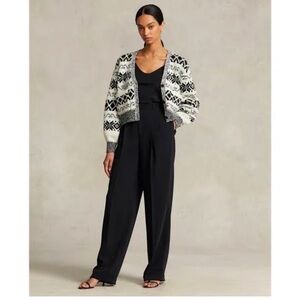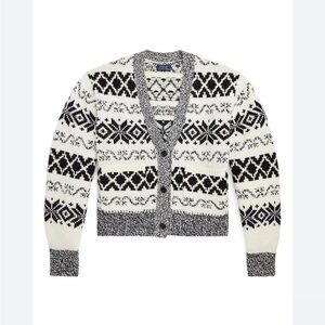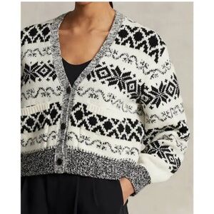 Polo Ralph Lauren Geo Stripe Wool Blend Cardigan Black White Oversize Boxy M NEW