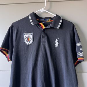 Germany Shirt Mens Large Black Polo Ralph Lauren Soccer Embroidered Crest Number 3