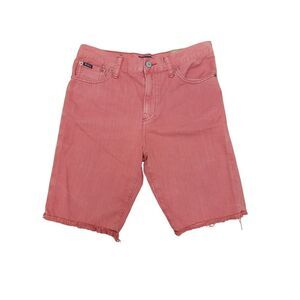 Polo Ralph Lauren Girl Jean Short Summer Finn Red Denim Raw Hem Fringe Size 16