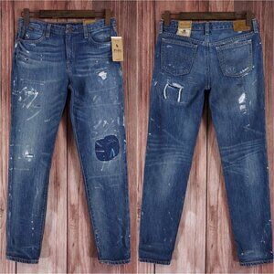 NWT Polo Ralph Lauren Girls Size 14 The Astor Slim Boyfriend Jeans Rip Repair Embroidered