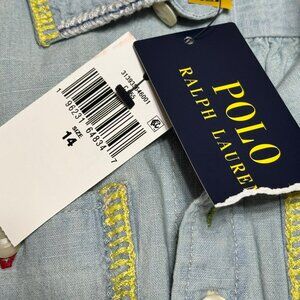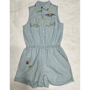 Polo Ralph Lauren Girls Embroidered Cotton Chambray Romper sz 14