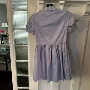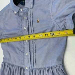 Excellent pre-owned condition. The Oxford shirt dress is a lovely lavender color. Made from 100% cotton. It has pin tucked top, short puffed sleeve and pony logo on the front. See photos for measurements