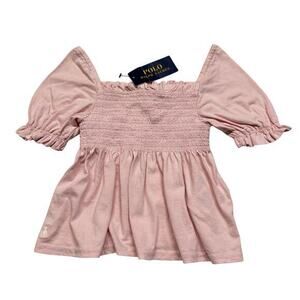 Polo Ralph Lauren Girl's Smocked Bodice Ruffle Cotton Jersey Top Pink Size 5 NWT