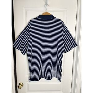 Polo Ralph Lauren 100% PIMA Cotton Stripe Button Collar Polo Shirt Size Large Colors: Navy Blue/Light Blue/White Condition is pre-owned, no damages Pit to Pit approx 23.5" Length approx 28.5" Features: Classic Fit Has Buttons Ribbed Collar Side Slit Stripe Design Short Sleeve 100% Pima Cotton Signature Embroidered Pony - Left Chest Machine Washable #golf #casual #preppy #resort #nautical #country club