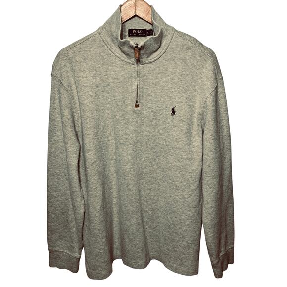 Polo Ralph Lauren Gray 1/4 Zip Cotton Classic Preppy Knit Pullover Sweater L