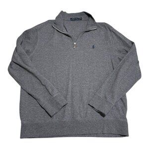 Polo Ralph Lauren Gray Navy Blue Pony 1/4 Zip Sweater Men’s Large