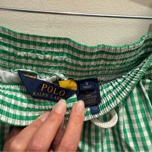 Polo Ralph Lauren Green Checkered Shorts Yellow Horse Size Small