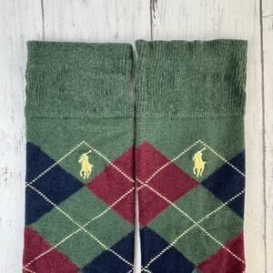 Polo Ralph Lauren Green Embroidered Pony Mercerized Argyle Dress Socks