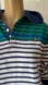 Stylish striped sweater with green and blue hues. Features a classic collar and long sleeves. Perfect for casual wear.