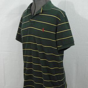 This is a very nice Green Polo with Blue and Yellow Stripes.