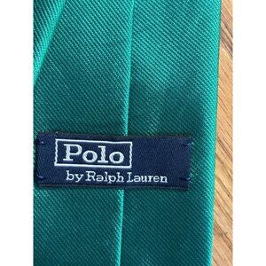 Polo Ralph Lauren Handmade Green Silk Tie With Red & Yellow Stripe Accent