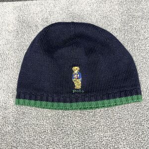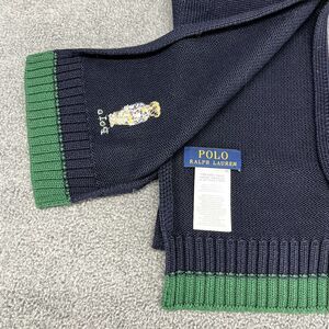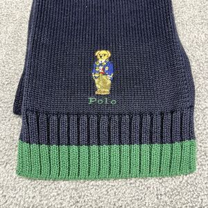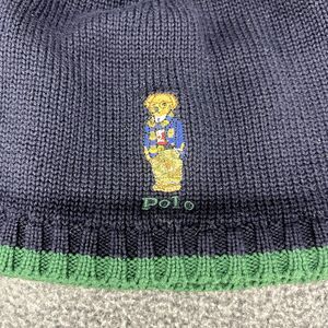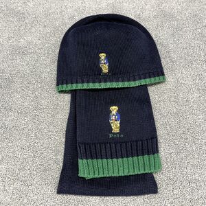Polo Ralph Lauren Hat & Scarf Teddy Bear Navy Blue Green knit Cotton 8-20 Youth
