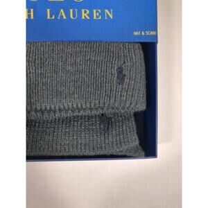 Polo Ralph Lauren Hat and Scarf Set Gray Black Striped Acrylic 2 Piece Gift Set