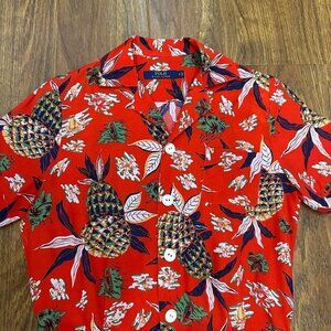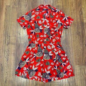 Polo Ralph Lauren silky red Hawaiian pineapple print romper.