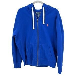 Polo Ralph Lauren Hoodie Mens Large Blue Full Zip Fleece Pony Logo Casual Cotton