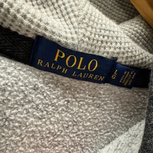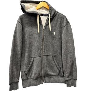 Polo Ralph Lauren Hoodie Mens Large Jacket Gray Full Zip Heavy Knit Raw Stitch Thermal Knit Hood Fleece Lined Outdoor Coastal Preppy