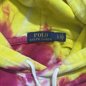 This Polo Ralph Lauren Hoodie in men's size Large features a colorful spiral tie-dye design, making it a stylish and unique addition to any wardrobe. Made of comfortable cotton material, this pullover sweatshirt includes a drawstring closure, hooded style, and convenient pockets. The classic and preppy branding of Polo Ralph Lauren adds a touch of sophistication to this playful and eye-catching hoodie, perfect for men who appreciate both fashion and comfort.