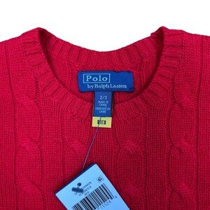 Polo Ralph Lauren Iconic Cable-Knit 100% Cashmere Sweater Red Toddler Size 2/3