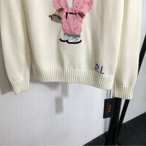 Polo Ralph Lauren Ivory Sweater with Pink Bear Design