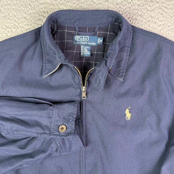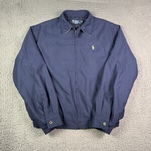 Polo Ralph Lauren Jacket Mens M Navy Bi Swing Windbreaker Zip Bomber Chin Strap