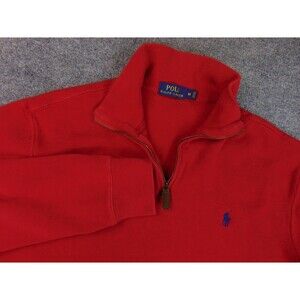 Polo Ralph Lauren Jacket Mens Med Red Solid Knit Quarter Zip