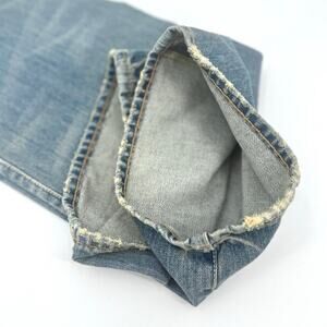 Good preowned condition. These jeans are factory distressed with an acid wash (yellowing). Please zoom in on all photos as I’ve tried to capture this condition.