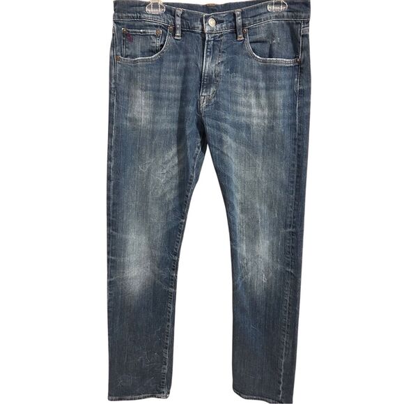 Polo Ralph Lauren Jeans Mens 32x32 Varick Slim Straight Blue Denim Jeans Distres