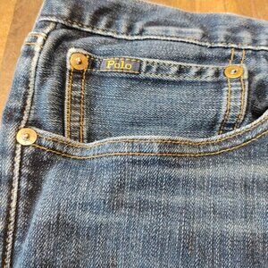 Polo Ralph Lauren Jeans Men's 40x30 Blue Varick Slim Straight Denim Distressed.