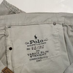 Polo Ralph Lauren Jeans Mens Size 42x32 Varick Slim Fit Straight Hemp Denim Grey Zip NWT
