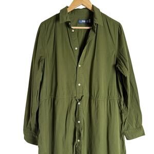 Polo Ralph Lauren Jessica Day Green Cotton Eyelet Drawstring Midi Shirt Dress 14